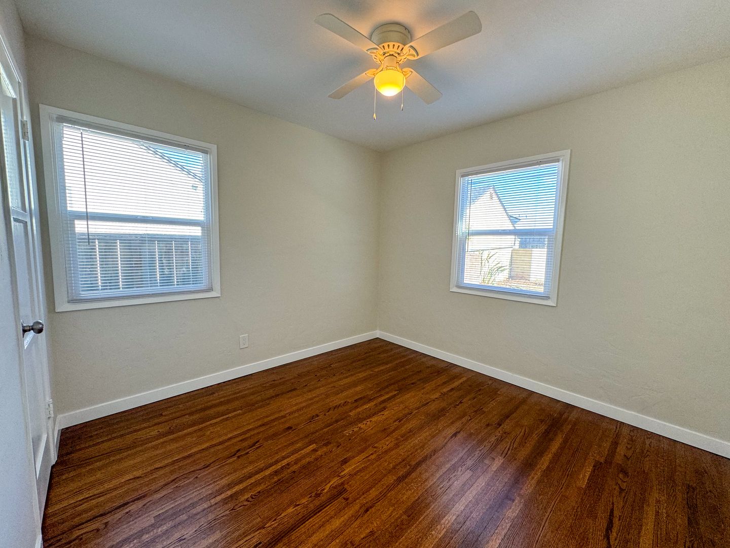 Spacious rear yard with pergola covered concrete patio area and space for planters and room to play. First year property lease to include use of detached garage space and driveway for off-street vehicle parking.